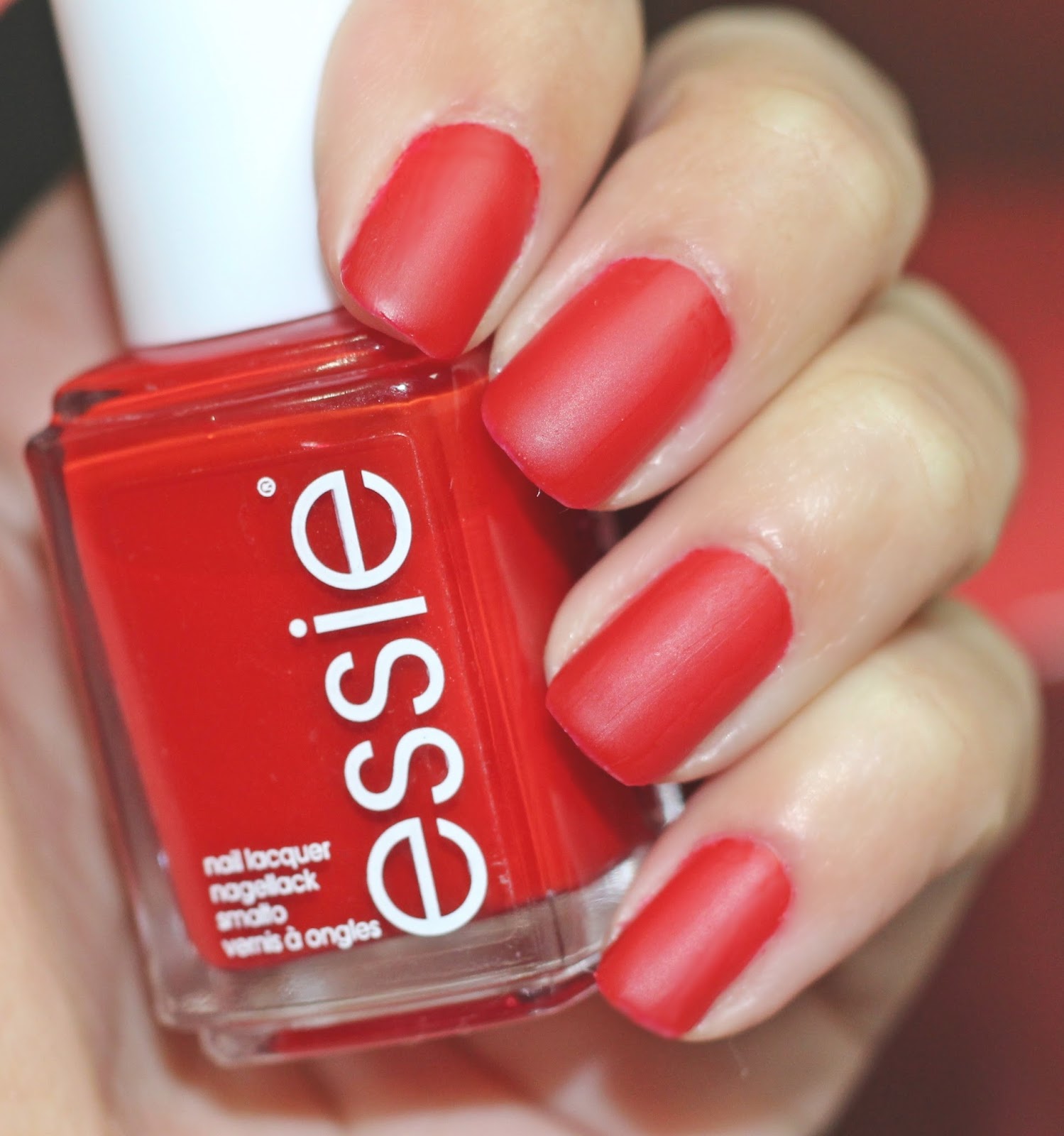O verniz que usei esta semana é da Essie na cor Aperitif! Um vermelho bem apaixonante e ousado! É a primeira vez que estou a testar um verniz da marca... Fiquei surpreendida com o poder de cobertura da primeira camada! Ficou logo vermelhão... No entanto eu passei duas camadas para garantir uma cor intensa! Para conseguir o efeito matte coloquei o top coat Matte da Formula X.